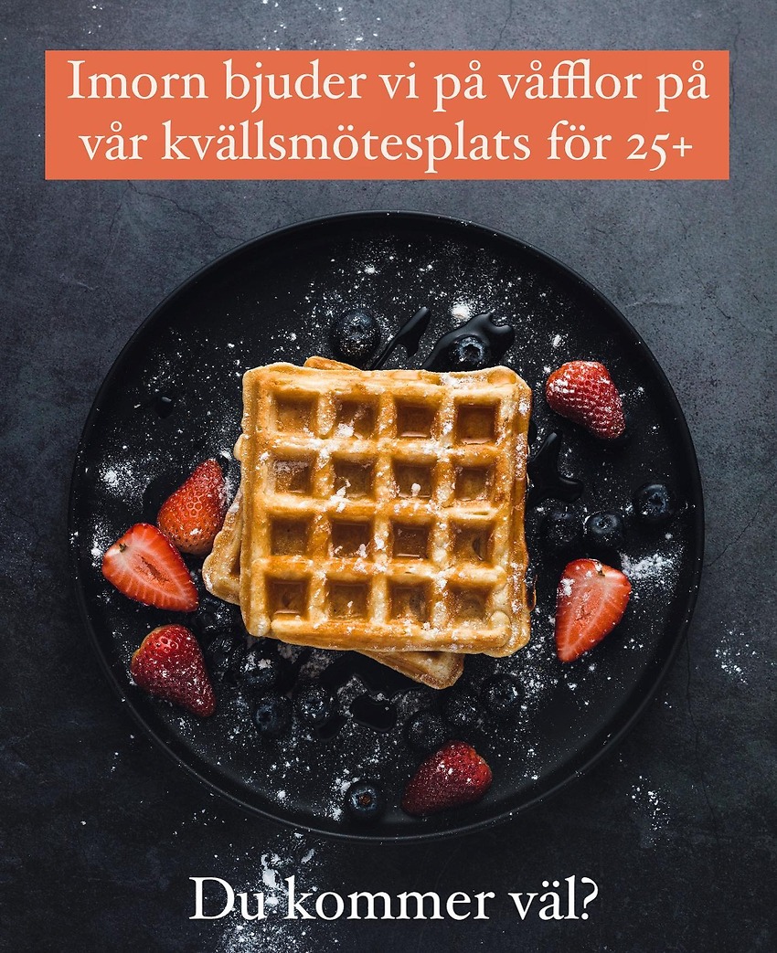 Välkommen till vår mötesplats 25+. Vi träffas tisdagar mellan kl. 18.00-20.00 på frivilligcentralen och spelar spel, fikar och bara umgås. Denna vecka bjuder vi även på våfflor så var inte för mätt när du dyker upp.