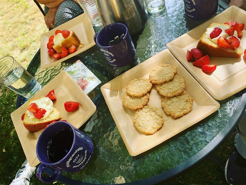 I sommar bjuder Demensföreningen i Norrköping in till cafeträffar i vår härliga trädgård. Häromdagen samlades ett härligt gäng för en fika ute i det härliga sommarvädret! Så roligt med lite liv och rörelse igen här utanför vårt lilla hus och såklart anpassat efter omständigheterna