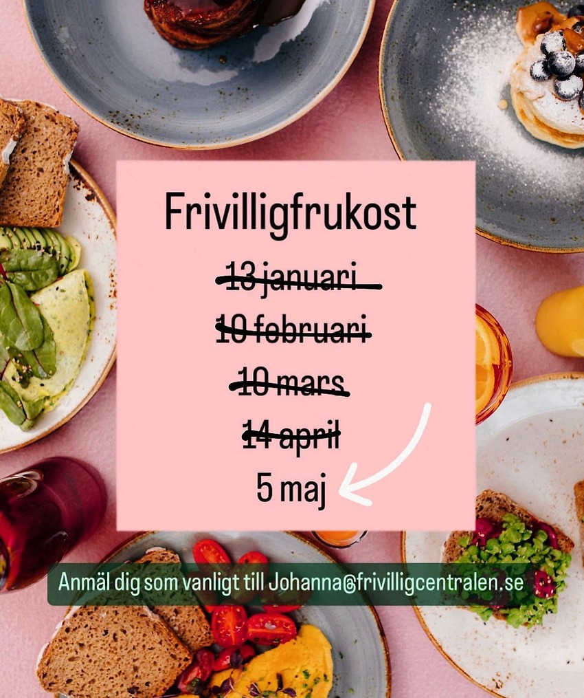 På fredag den 5/5 är det dags för vår goa Frivilligfrukost igen! En chans att träffa andra frivilliga, byta erfarenheter och samtidigt äta en riktigt mumsig frukost. Kan man börja en fredag på ett bättre sätt?