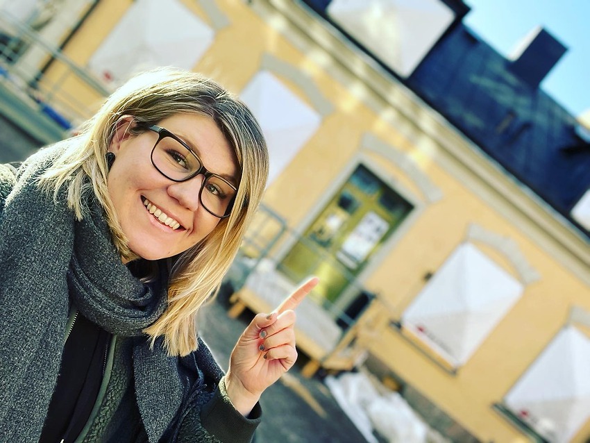 Har ni sett vilket mysigt litet hus som börjar smyga sig fram här! Idag påbörjades arbetet med att ta bort plast och ställningar (..äntligen). Nu längtar vi tills fönstren är på plats och allt är klart, kommer bli så fint!