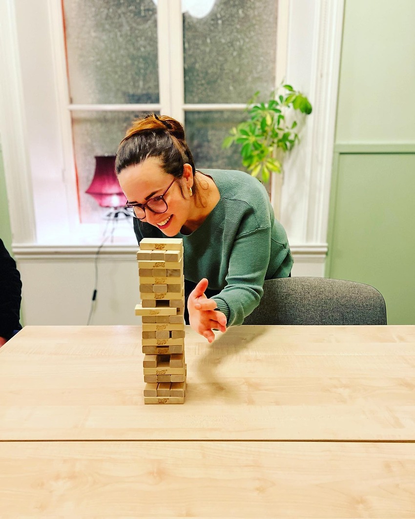 Det bjöds på belgiska våfflor för alla smaker. Hallonsylt, jordgubbssylt, nutella, grädde.. ja väldans mycket gott! Å efter ätandet var det dags för en riktig skrattfest när vi dammade av det gamla spelet Jenga och vi kan konstatera att några av oss tog de säkra brickorna medans andra var mer vågade. Ett högt torn blev det iaf och skoj hade vi!