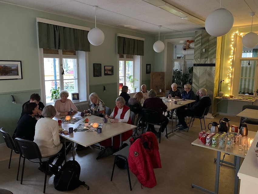 En riktigt fin stund med tända ljus, skratt, samtal, nya bekantskaper, lotterier och massa fika! Så härligt att höra surret som blir när vi möts i vårt lilla hus!