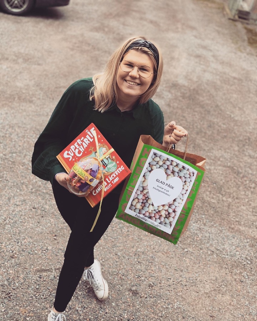 Det blev ett påskägg till alla barn och även en liten överraskning i form av en bok i anpassad ålder. Att läsa är ju viktigt och kul så det vill vi vara med och bidra till ...men vi kände att det inte riktigt kunde ta slut där så det blev även ett presentkort på mat till alla familjer! Så fint att få träffa alla mysiga familjer och önska en glad påsk samt lämna över vår påskpresent. Tillsammans gör vi Norrköping lite varmare!