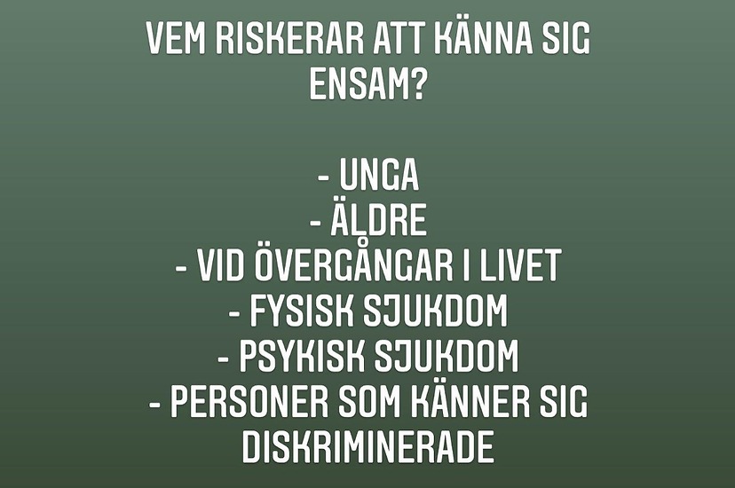 Igårkväll bjöd Helsa Vårdcentral i Skarphagen in oss och andra föreningar till en informationsträff kring ofrivillig ensamhet. En möjlighet för oss att samtala kring hur det ser ut i vår stad och vad vi gemensamt kan göra. Vi pratade b.la om vad det innebär att känna sig ofrivilligt ensam och att vi alla i olika tider i livet kan känna så. Det är därför viktigt att vi pratar om det och att det inte är något konstigt att känna sig ensam. Att engagera sig som frivillig el att besöka en mötesplats kan vara ett sätt att känna sig mindre ensam genom att man får en ny gemenskap, nya kontakter och ett sammanhang där man är efterfrågad och välkomnad som man är.