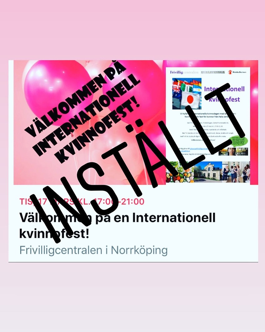 Utifrån de senaste dagarnas rapportering kring Coronaviruset har Frivilligcentralen, Rädda barnen och Sy på svenska valt att ställa in den Internationella kvinnofesten imorgon. Såklart tycker vi att det är jättetråkigt men det känns som rätt beslut utifrån hur läget ser ut just nu. Vår ambition är att bjuda in till en ny kvinnofest längre fram när det har lugnat ner sig lite och vi vet hur allt utvecklar sig!