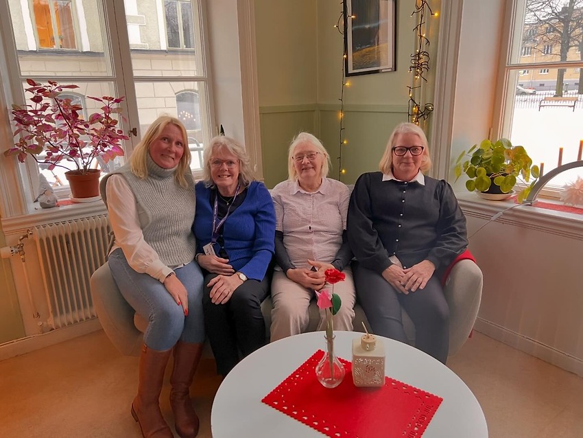 Vi är så glada över att de här fyra håller ihop det och ser till att just du känner dig välkommen när du besöker vår mötesplats. På bilden ser du från vänster Maarit, Ing-Marie, Dagny och Marie. Ett härligt gäng!