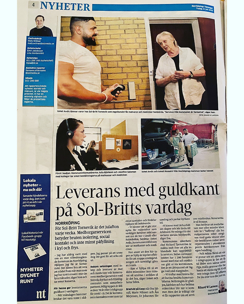 Du missade väl inte att vi var med i NT häromveckan? Där kunde du läsa om det arbete som görs inom Medborgarstödet. Ett fint samarbete mellan Norrköpings kommun, Svenska kyrkan och oss på Frivilligcentralen.