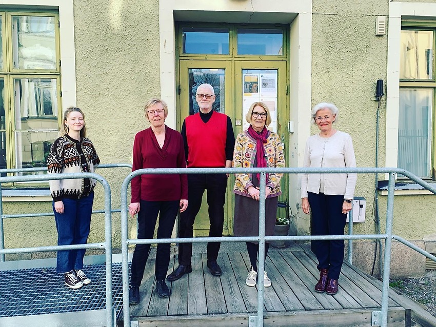 Från vänster i bilden: Isabelle (sekreterare), Eva (ordförande), Per Åke (vice ordförande, Anna Maria (ledamot) och Britt-Marie (ledamot). Deltog gjorde även Marie (ledamot) men på telefon därav saknas hon på bilden.