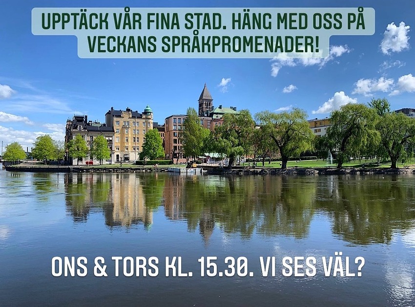 Passa på att njuta av sol och vår vackra stad samtidigt som du tränar på det svenska språket. Vi ses som vanligt ons & tors kl. 15.30 utanför stadsbiblioteket och går en gemensam promenad för att sedan stanna till utanför Frivilligcentralen för en avslutningsfika. Du kommer väl?