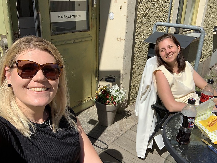 I onsdags var det dags för ett soligt lunchmöte med en vän och var passar bättre att sitta än på Frivilligcentralen!