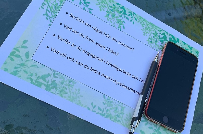 Igårkväll samlades vi för det första styrelsemötet för den här terminen. Solen sken och det var en fin augustikväll så vi satte oss ute för ett lite annorlunda styrelsemöte. Denna gång hade nämligen vår Frivilligsamordnare Johanna hittat på en uppgift som skulle genomföras innan mötet. En uppgift som gav oss möjlighet att lära känna varandra mer samt prata kring vad vi alla kan bidra med i det kommande styrelsearbetet.