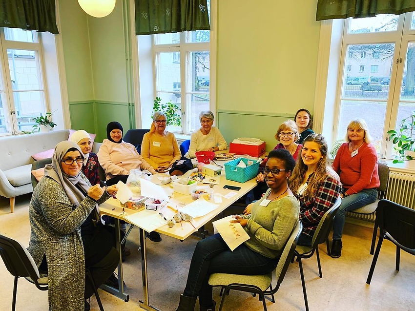 Vanligtvis så brukar onsdagar på Frivilligcentralen betyda att ”Sy på svenska” möts och då bjuds det alltid på pyssel, skratt, prat och massa goda kakor. Det är alltid ett stort och härligt gäng som brukar mötas. Det har nu varit en annorlunda vår och vi på Frivilligcentralen saknar verkligen både våra frivilliga och besökare som brukar mötas på ”Sy på svenska”. Tur att de har lämnat lite konst som vi kan njuta av på plats till de kommer tillbaka igen!