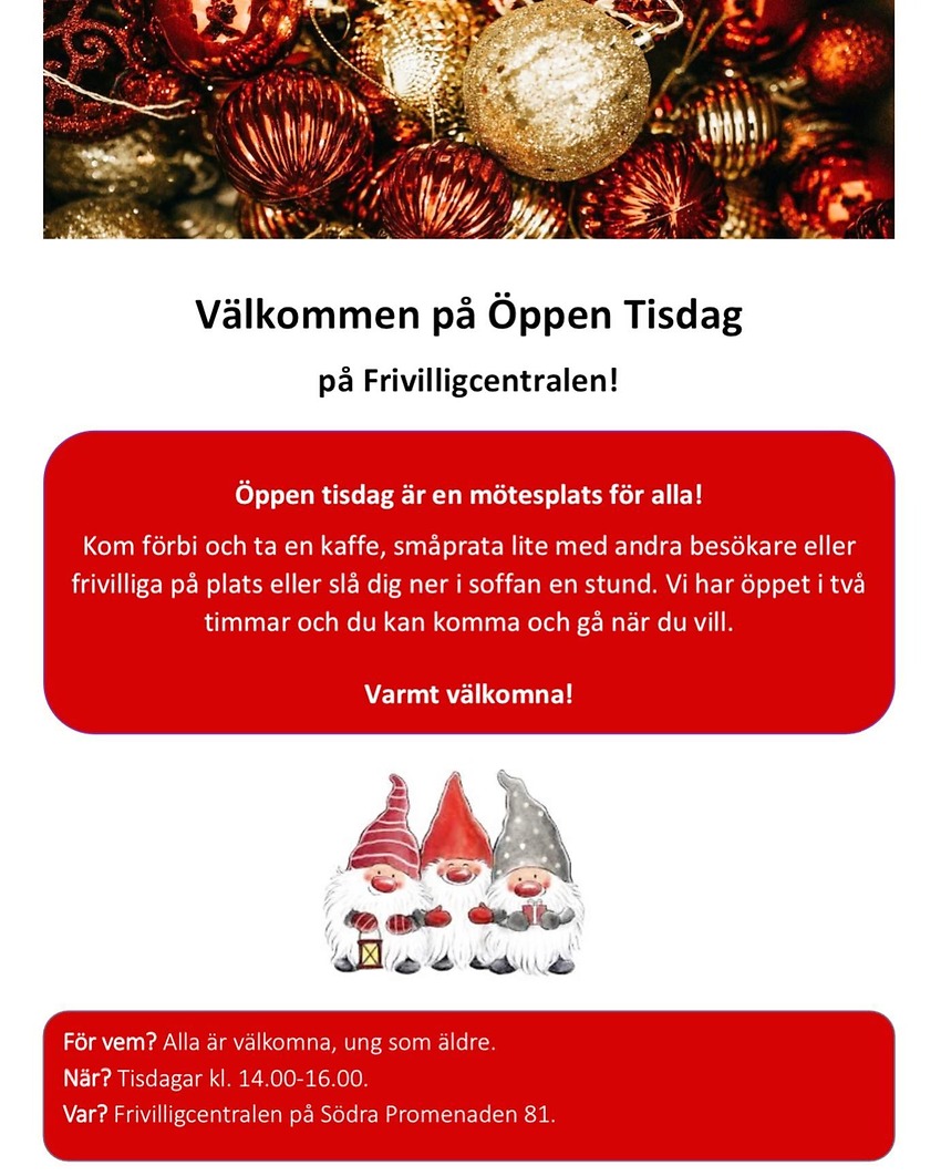 Varmt välkommen till oss imorgon på Öppen tisdag! Vi håller öppet som vanligt mellan kl. 14.00-16.00 och du stannar så länge du vill. Vi har laddat upp med gofika och en härlig stund med med skratt, spel och gemenskap!