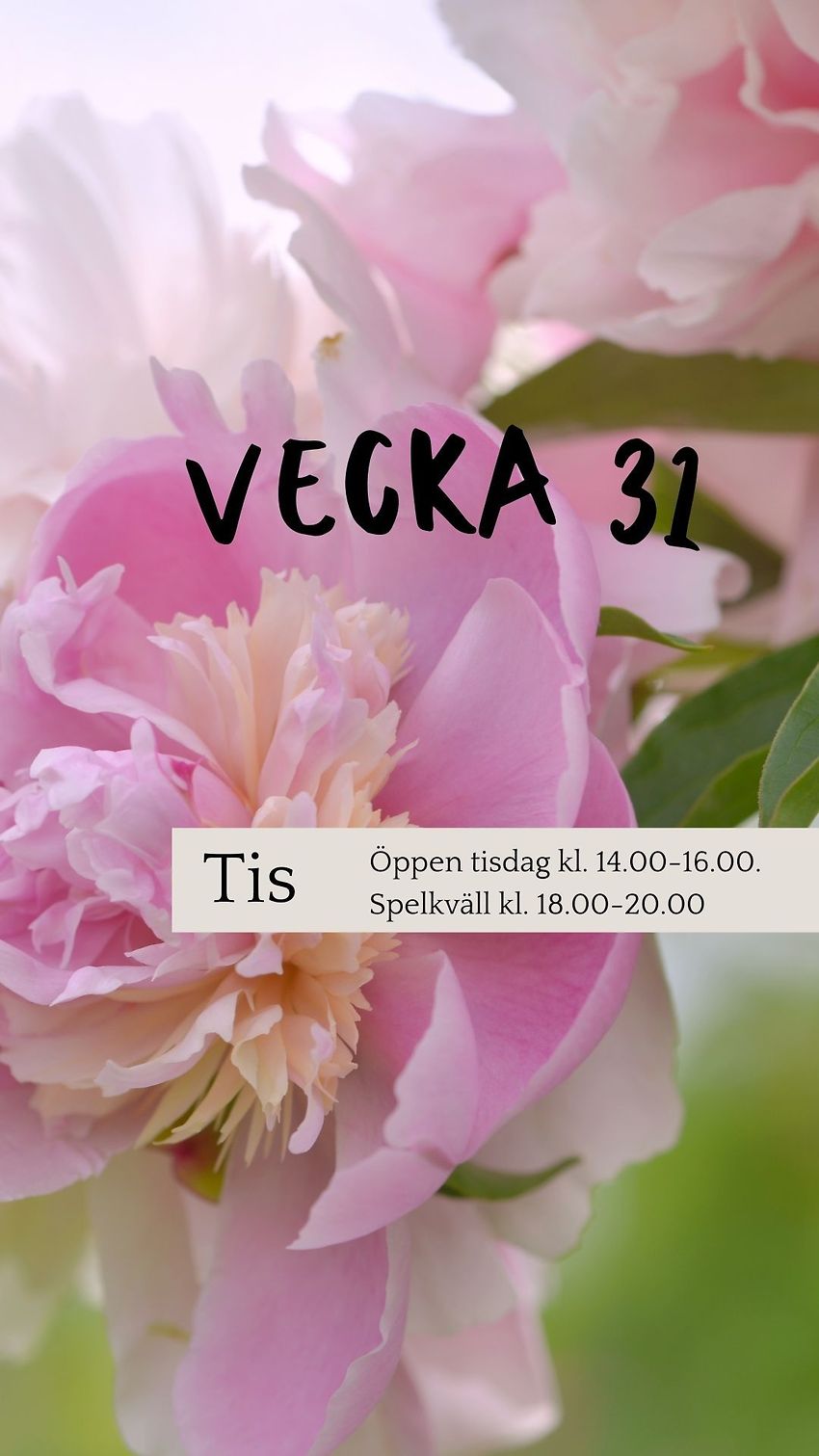 Vi går nu in i vecka 31 och denna vecka välkomnar vi er till: