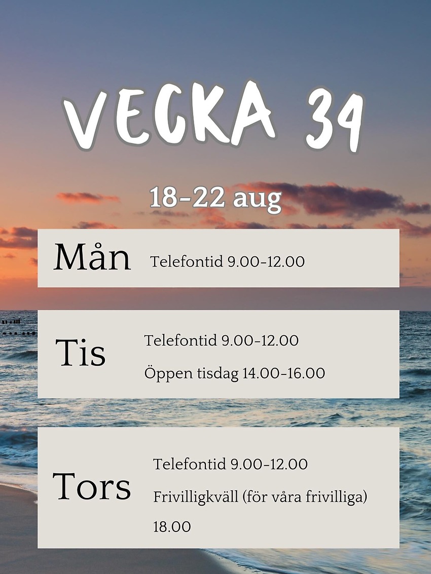 - Frivilligkväll tors kl. 18.00-21.00 (För våra frivilliga). En chans för dig som är frivillig att träffa andra frivilliga, prata och byta erfarenheter!