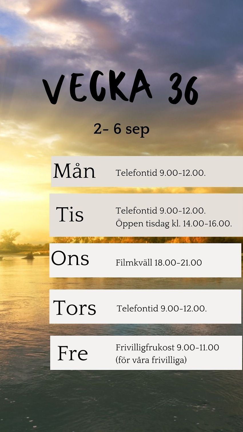 Vi går nu in i månaden september, vecka 36 och denna vecka välkomnar vi er till: