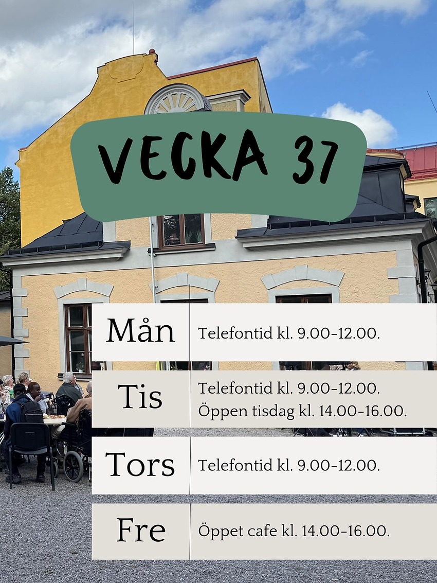 - Öppen tisdag kl. 14.00-16.00. Kom förbi och ta en kaffe, ställ en fråga eller småprata lite med oss.