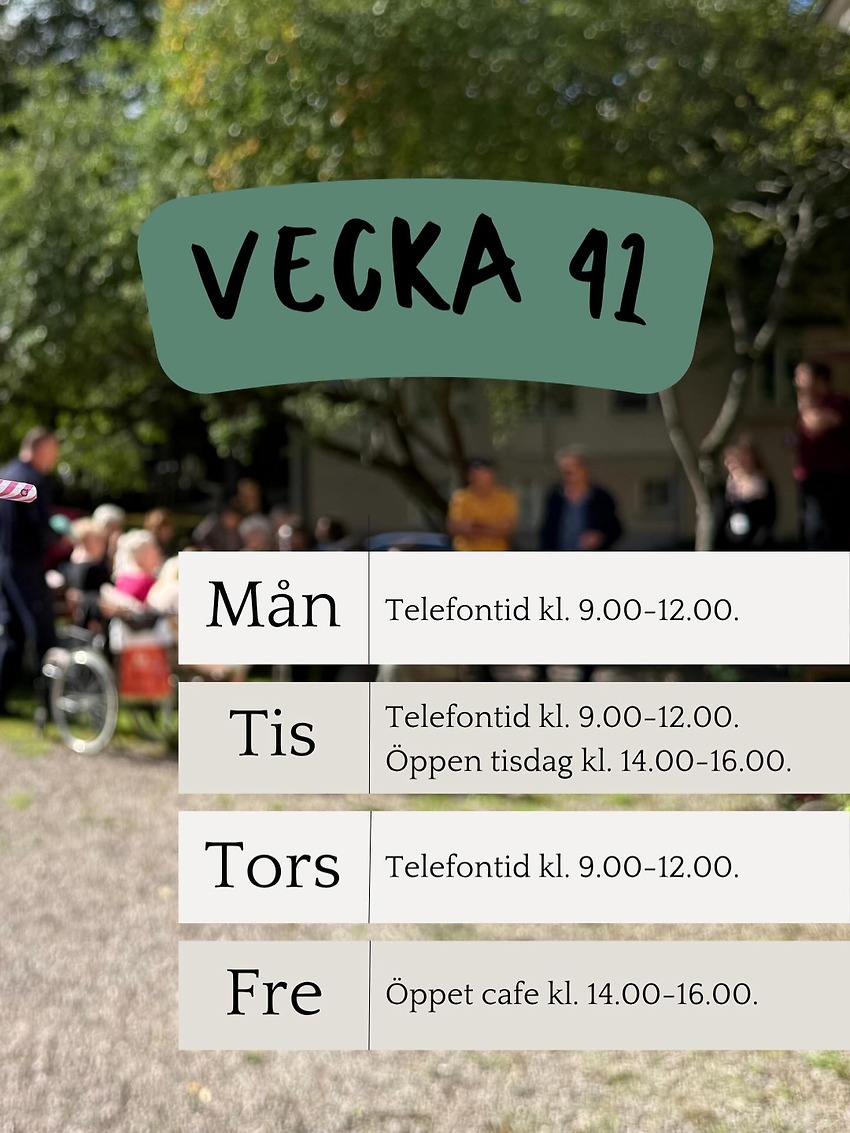 - Öppen tisdag kl. 14.00-16.00. Kom förbi och ta en kaffe, ställ en fråga eller småprata lite med oss.