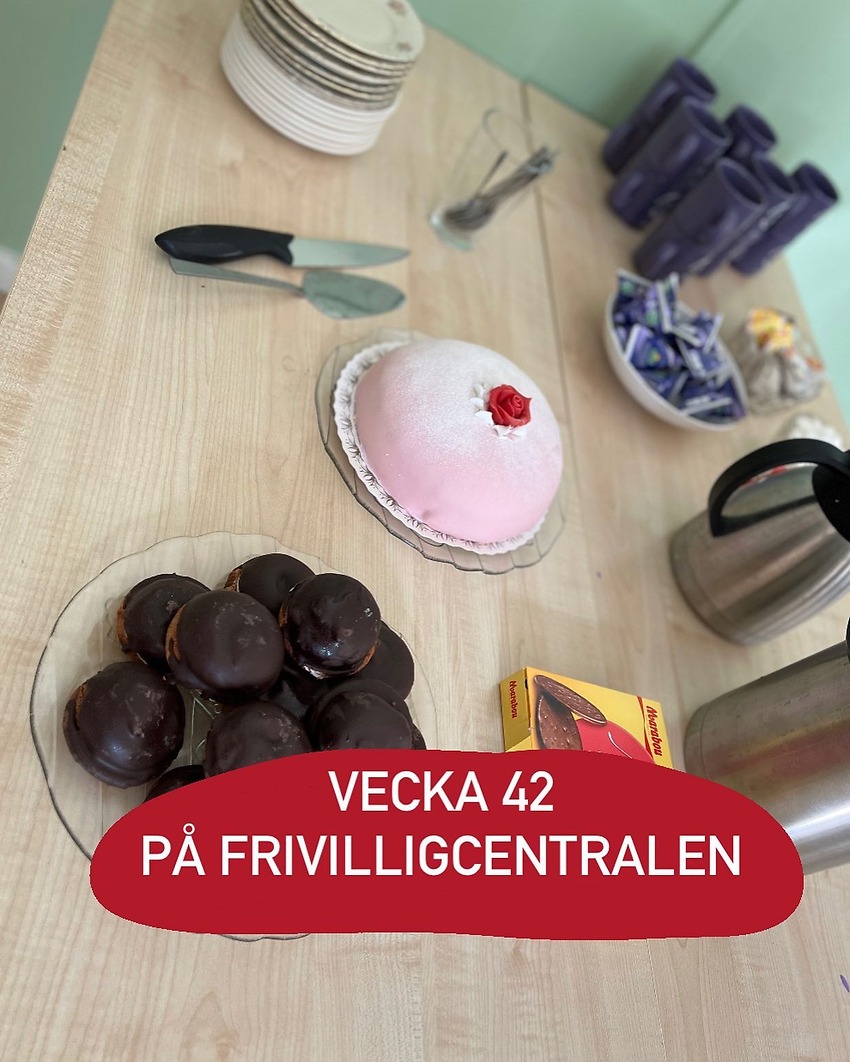 - Höstcafe, onsdag kl. 14.00-16.00. Kom förbi Frivilligcentralen för en pratstund och fika. Vi bjuder på tårta och annat smått och gott. Det vill du inte missa! Anmäl dig gärna till johanna@frivilligcentralen.se så vi köper rätt antal tårtbitar.