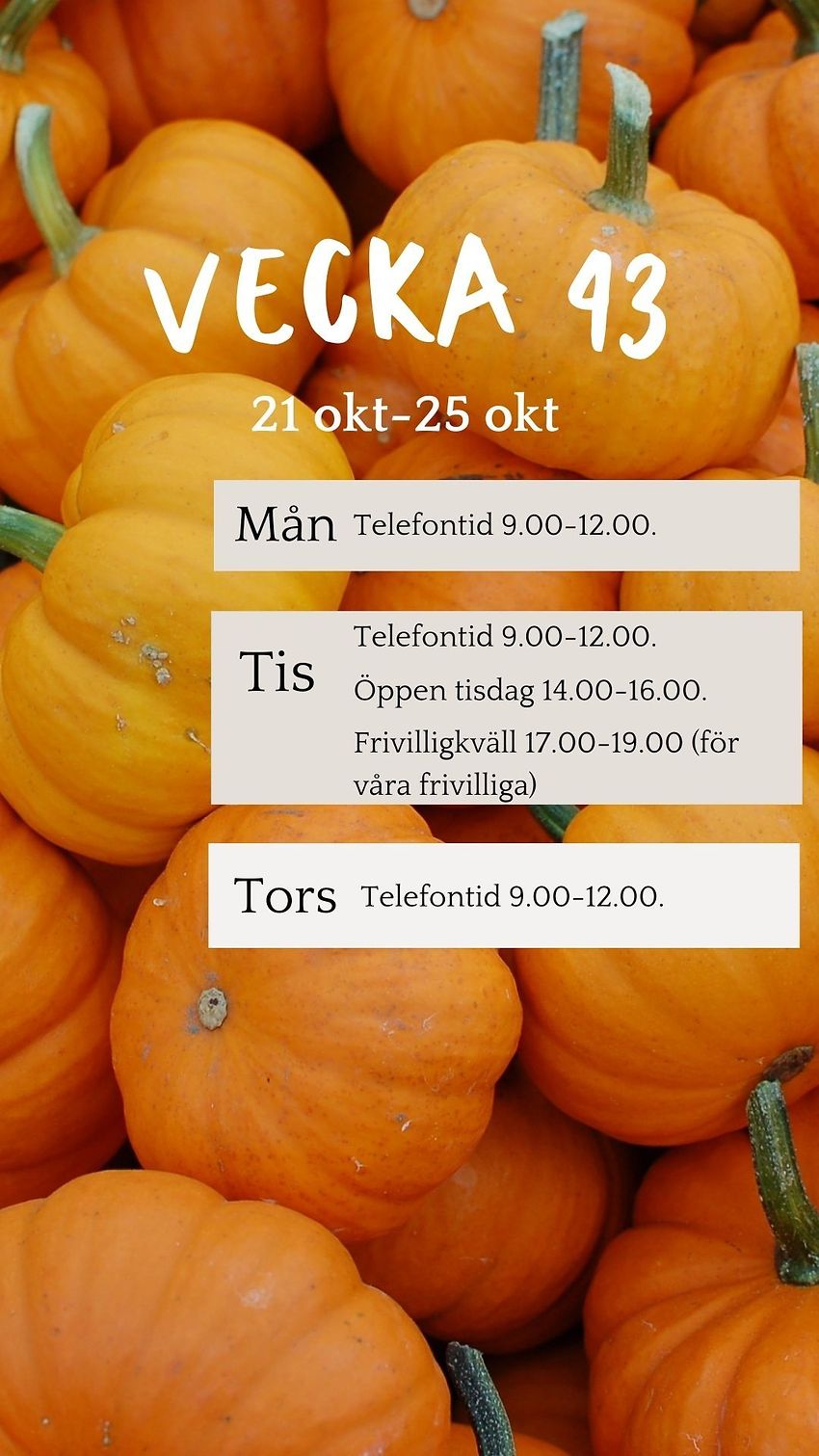 Vi går nu in i vecka 43 och denna vecka välkomnar vi er till: