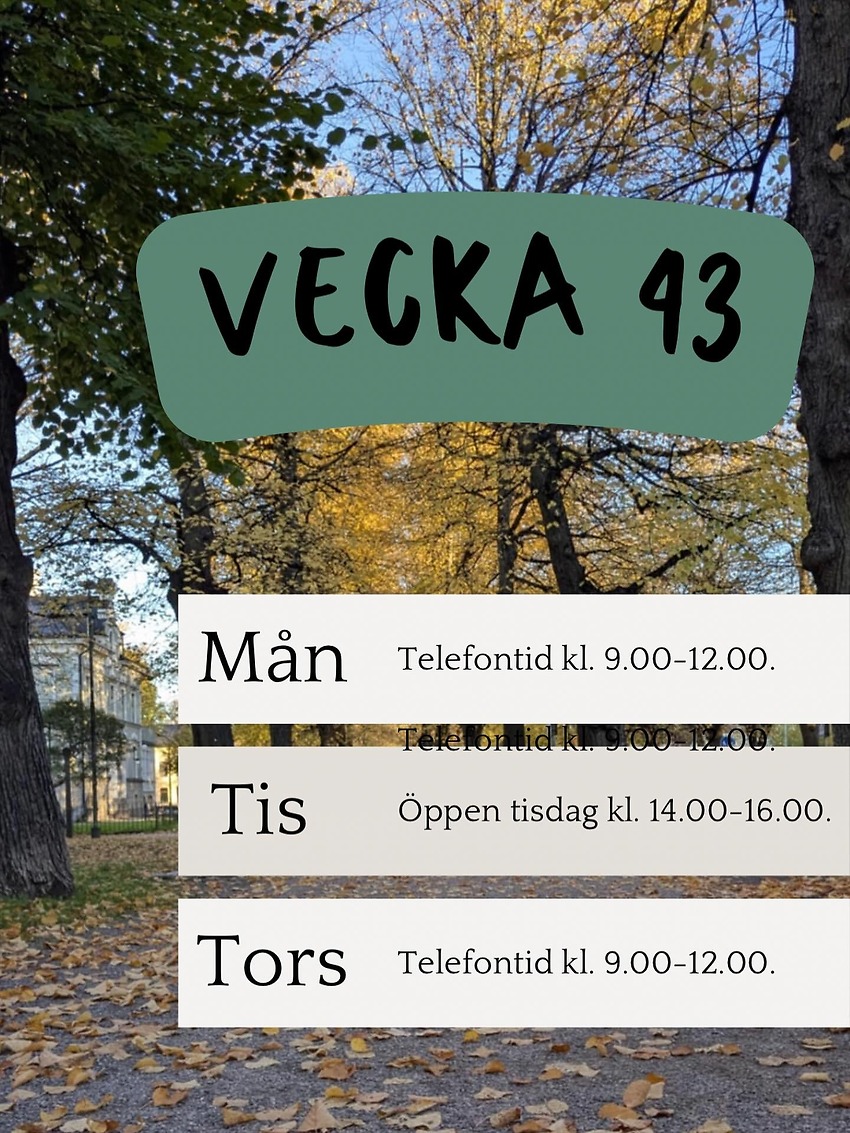 - Öppen tisdag kl. 14.00-16.00. Kom förbi och ta en kaffe, ställ en fråga eller småprata lite med oss.