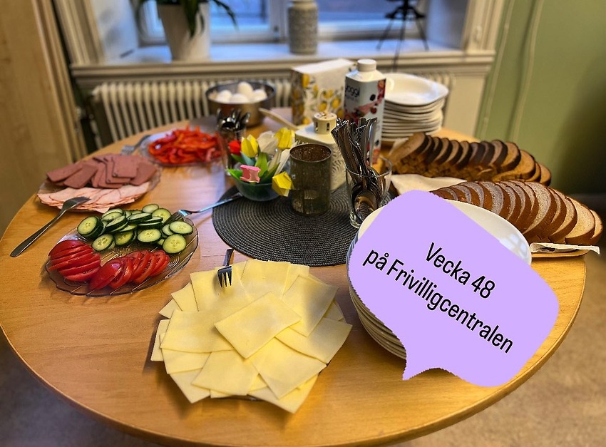 - Frivilligfrukost fre 1/12 kl. 09.00-11.00. Ett tillfälle för våra frivilliga att mötas, byta erfarenheter och njuta av god frukost tillsammans. Du anmäler dig till johanna@frivilligcentralen.se