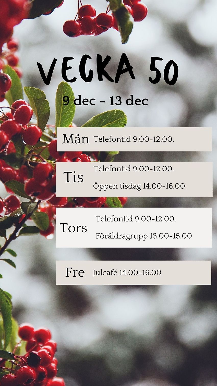 Vi går nu in i vecka 50 och denna vecka välkomnar vi er till: