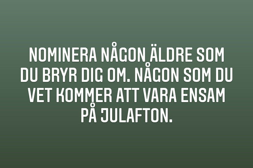 Hör av dig till oss och nominera en äldre person som kommer vara ensam på julafton och som du tror skulle uppskatta en julhälsning.